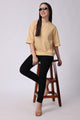 Women's Beige Plain Oversized Drop Shoulder T-Shirt
