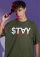 The Hustle Harder Drop Shoulder T-shirt features Half Sleeves, striking the perfect balance between casual and trendy. The Olive Green color adds a touch of sophistication and versatility, making it an ideal choice for pairing with various bottoms, from jeans to joggers.