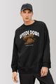 The premier sweatshirt material is crafted from a blend of cotton, offering a comfortable and cozy feel. It boasts a relaxed fit with dropped shoulders and features ribbed detailing around the neckline, cuffs, and hem.