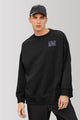 The premier sweatshirt material is crafted from a blend of cotton, offering a comfortable and cozy feel. It boasts a relaxed fit with dropped shoulders and features ribbed detailing around the neckline, cuffs, and hem.
