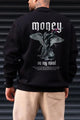 The premier sweatshirt material is crafted from a blend of cotton, offering a comfortable and cozy feel. It boasts a relaxed fit with dropped shoulders and features ribbed detailing around the neckline, cuffs, and hem.